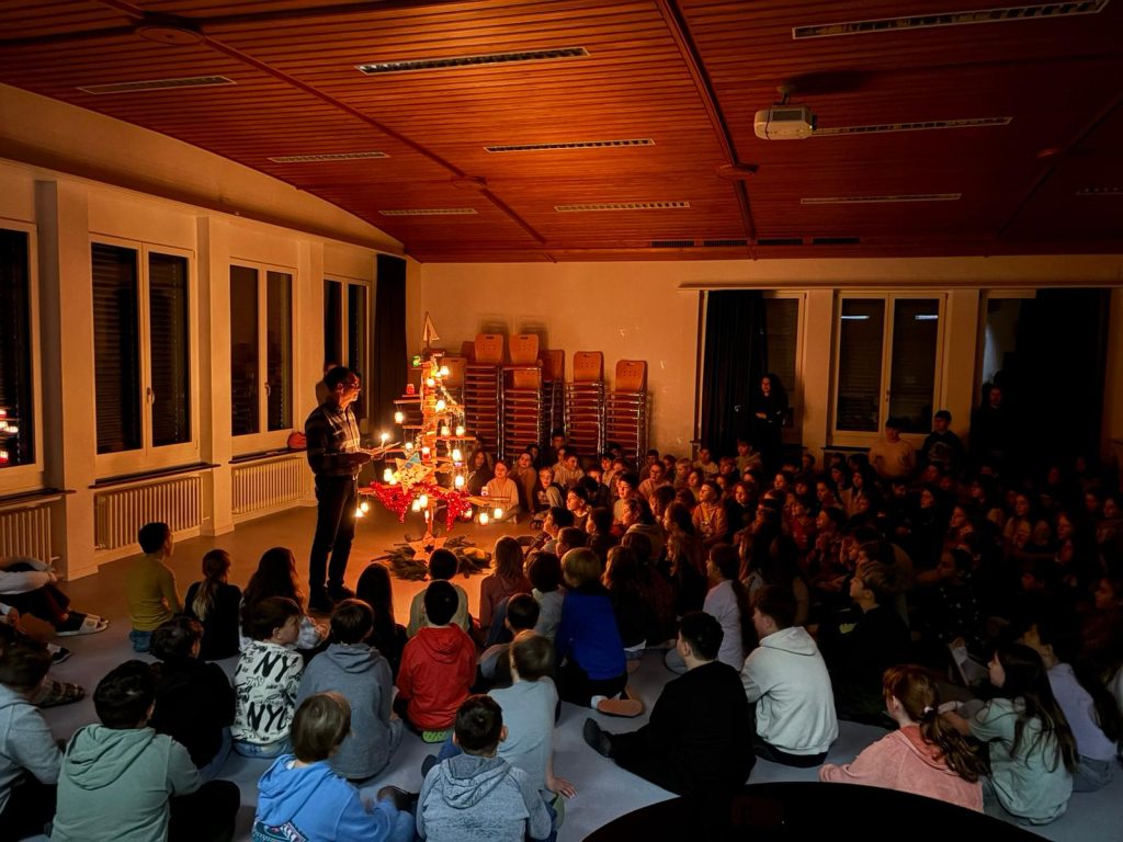 Am Donnerstag, 11. Dezember 2025 versammelten sich die 3. – 6. Klassen, um 07:30 Uhr im Singsaal. Dort hörten wir eine Geschichte zu einem ganz speziellen Weihnachtsgeschenk. Mitten im Raum leuchtete ein besonderer Weihnachtsbaum. Anschliessend ging es in zahlreichen Räumen ans Basteln. Im Schulhaus herrschte eine friedliche Stimmung. Aus den Zimmern klangen die Weihnachtsklassiker und die Taschen der Kinder wurden gefüllt mit vielen, tollen und vorallem selbstgemachten Geschenken. Nachfolgend ein paar Impressionen: