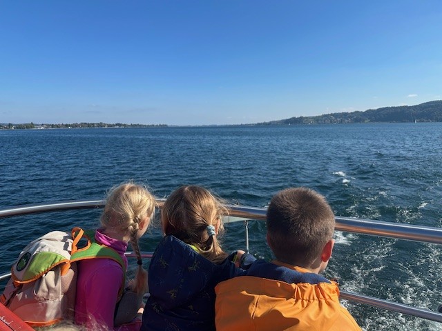 Am 02. Oktober fand unsere jährliche Herbstwanderung statt. Bei strahlendem Sonnenschein wanderten wir von Steckborn nach Berlingen. Beim Jochental konnten wir noch zwei Babyschafe und ihre Mama beobachten. Von dort ging es dann weiter zum weissen Felsen, bei dem es die Znünipause gab. Auf dem weiteren Weg hatten wir immer wieder einen atemberaubenden Ausblick auf den Untersee und konnten ausserdem einen Ameisenhügel beobachten, was sehr spannend war. In Berlingen angekommen hatten die Kinder Zeit sich auf dem Spielplatz am See auszutoben, Zmittag zu essen, mit ihren Freunden zu spielen oder neue Freundschaften zu knüpfen. Als abschliessendes Highlight wurden wir vom Schiff Seestern in Berlingen abgeholt und über Horn und Gaienhofen zurück nach Steckborn gefahren. Es war ein wundervoller Tag mit guter Stimmung und viel Spass. Was für ein grossartiges Erlebnis als Einstimmung in die Herbstferien.