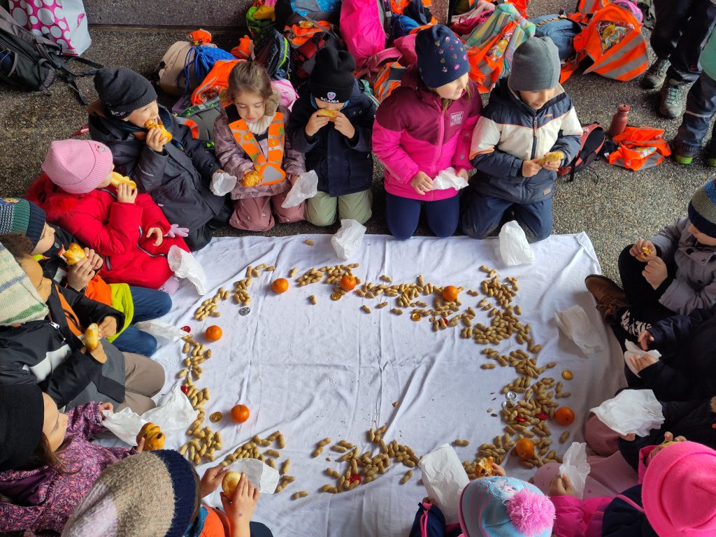 … und brachte uns einen leckeren Znüni. Wir genossen einen Gritibänz, Nüssli, Mandarinli und Schöggeli.